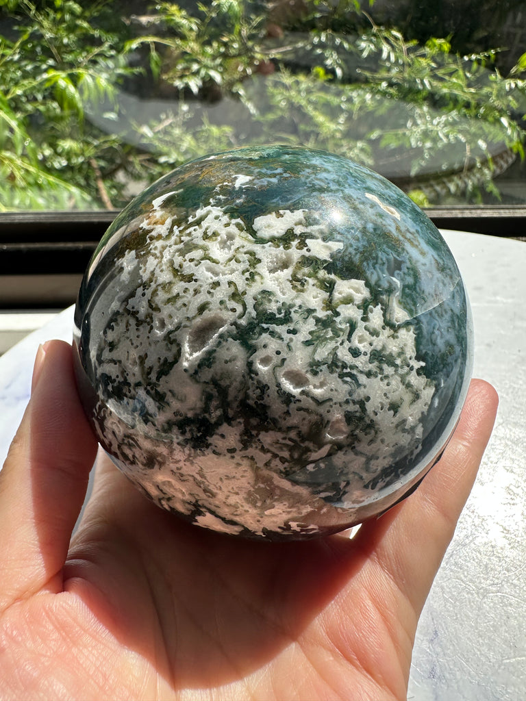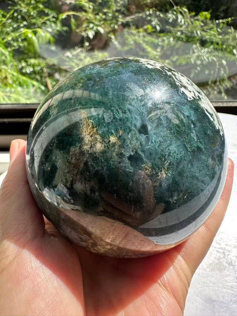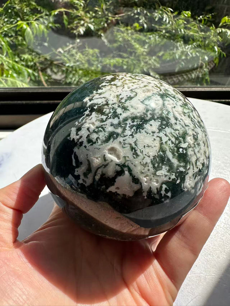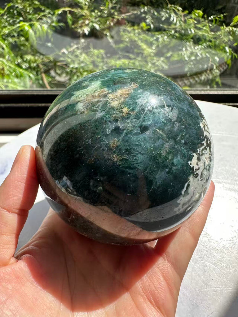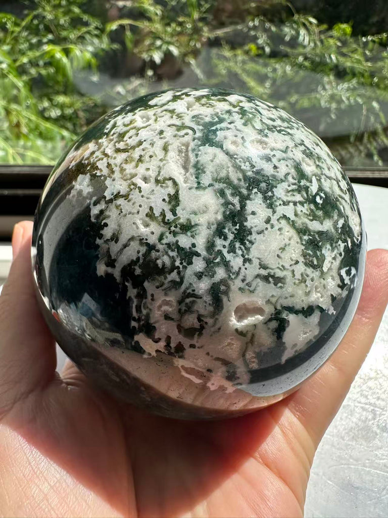 🌿 Large Moss Agate Sphere: Your Personal Piece of the Forest