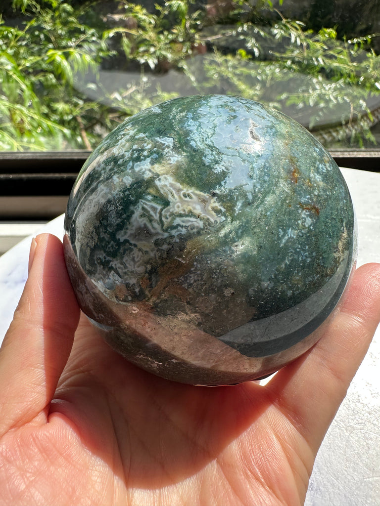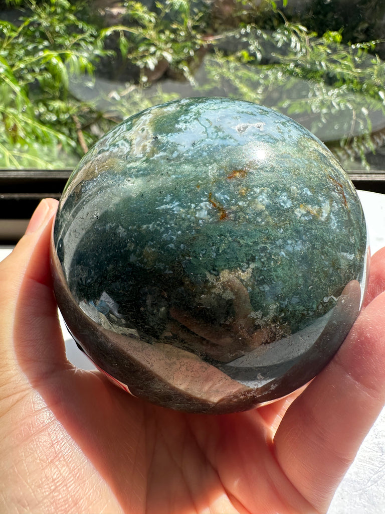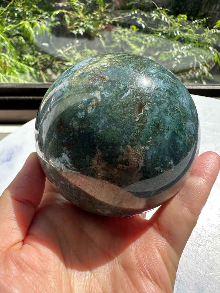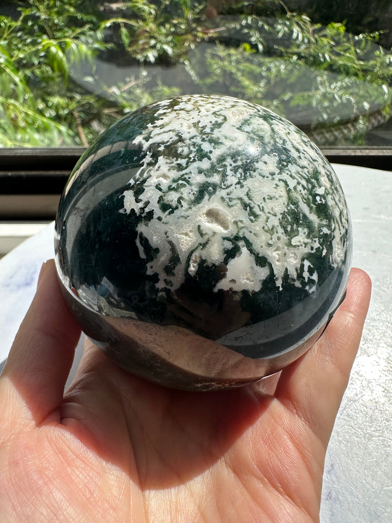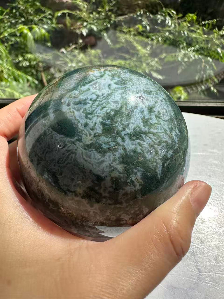 🌿 Large Moss Agate Sphere: Your Personal Piece of the Forest