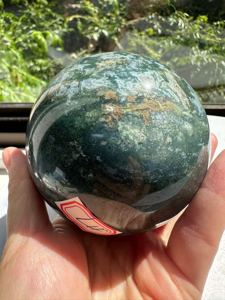Large Natural Moss Agate Sphere | Grounding & Nature Connection Crystal - christmas crystal gift #7