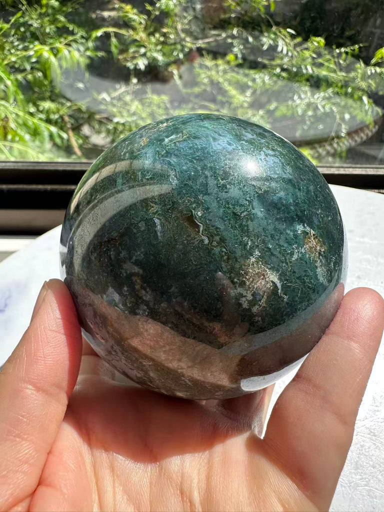 Introduction (The Hook - Focus on Visuals & Connection): Bring the tranquil energy of the deep forest into your space with this Large Natural Moss Agate Sphere. Each sphere is a one-of-a-kind work of art, featuring stunning green dendrite inclusions that resemble miniature gardens and mossy landscapes. It is the ultimate stone for connecting to the Earth’s grounding energy.