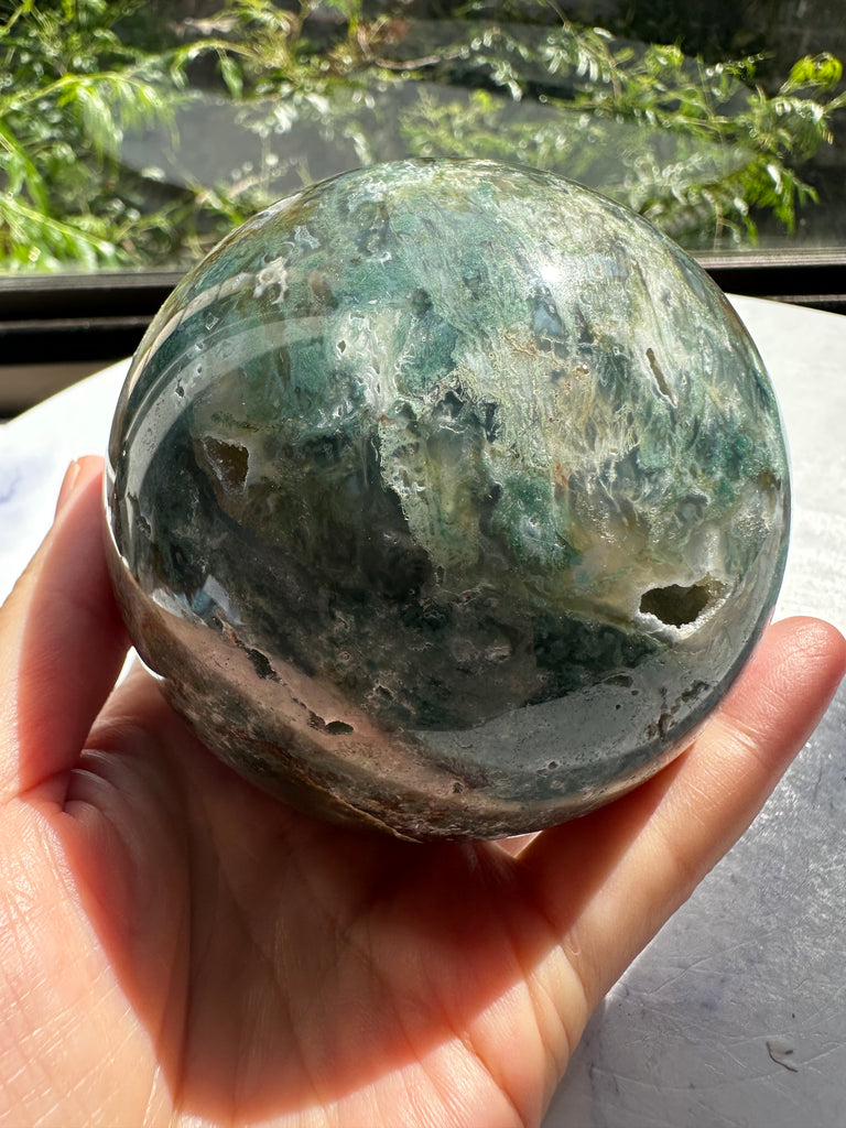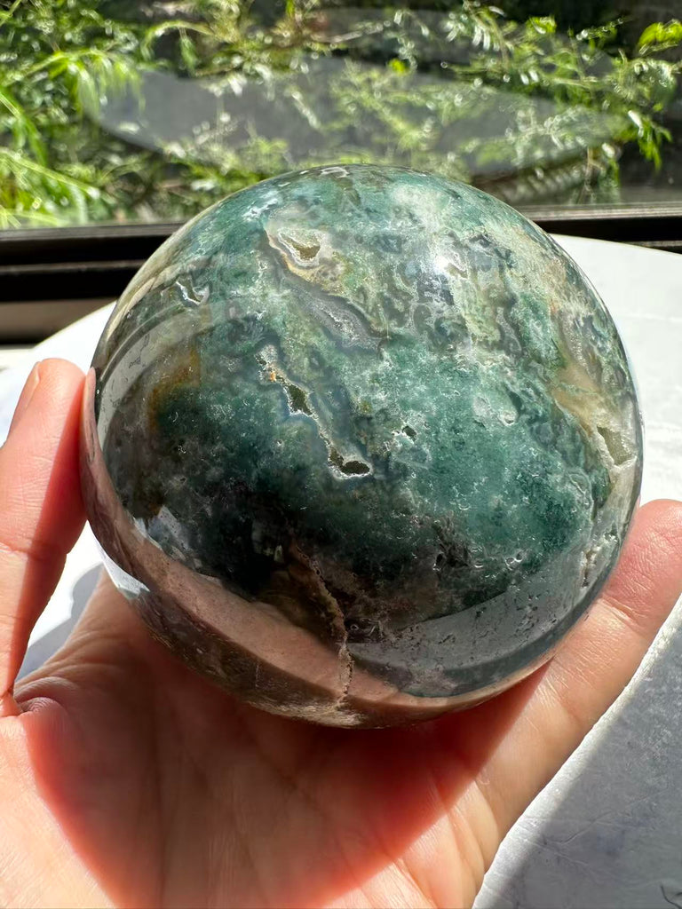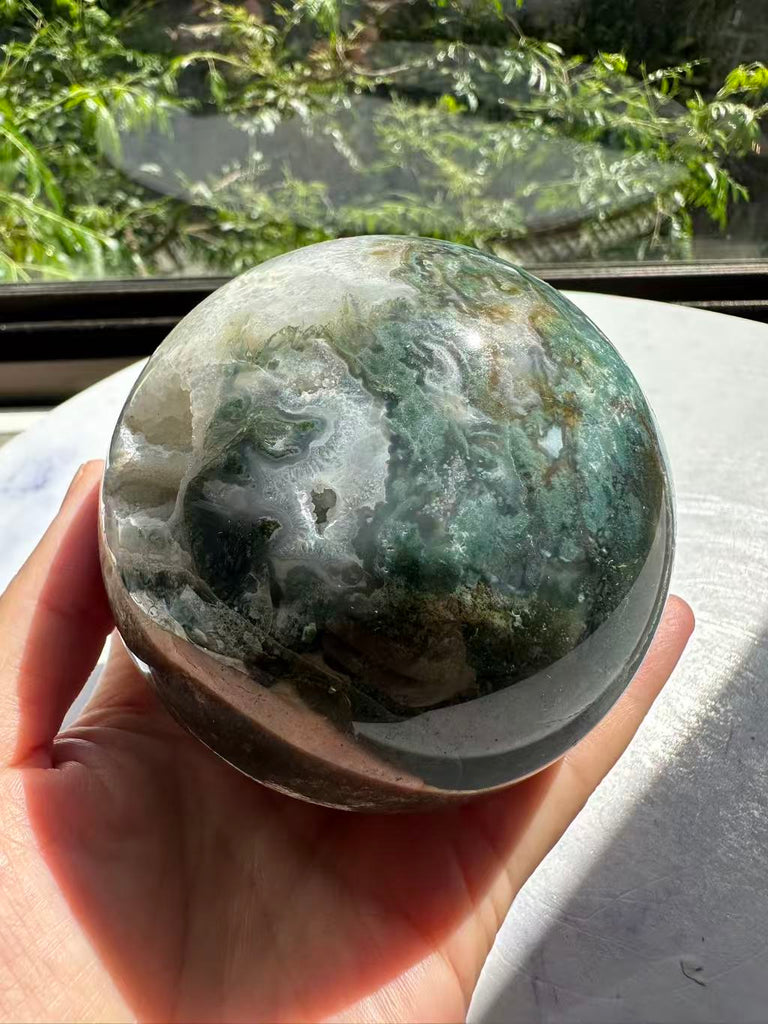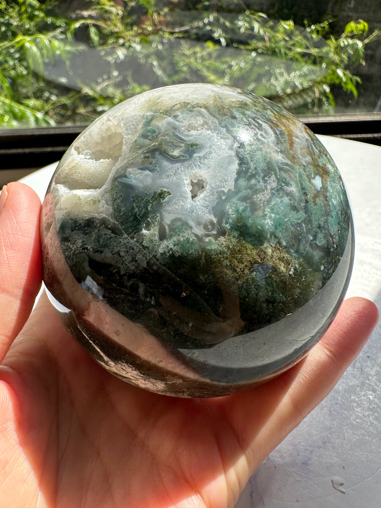 🌿 Large Moss Agate Sphere: Your Personal Piece of the Forest