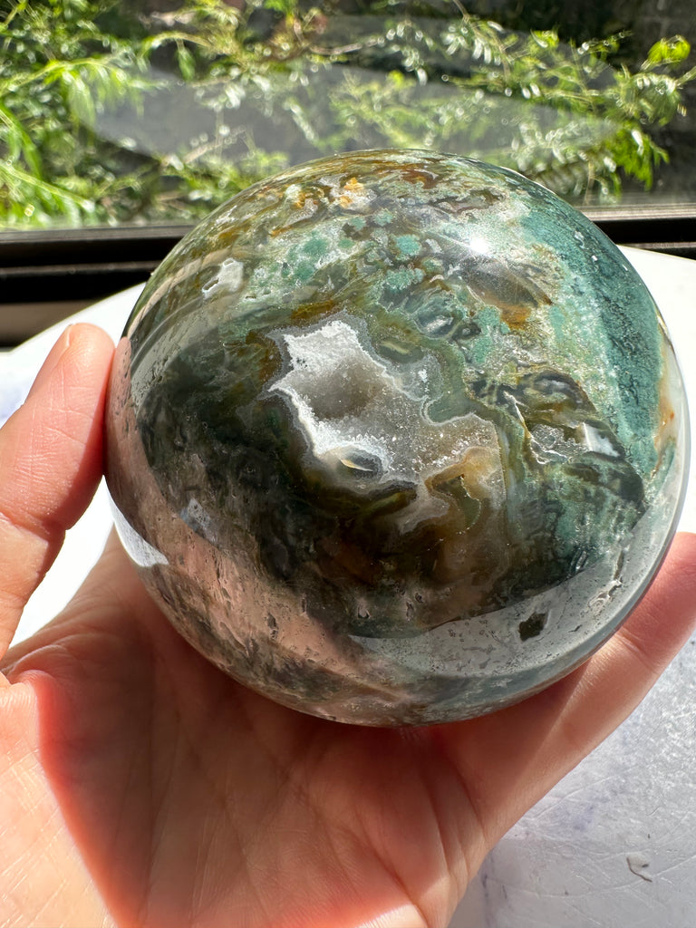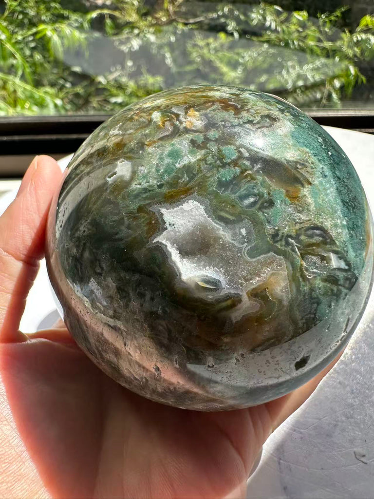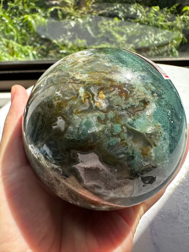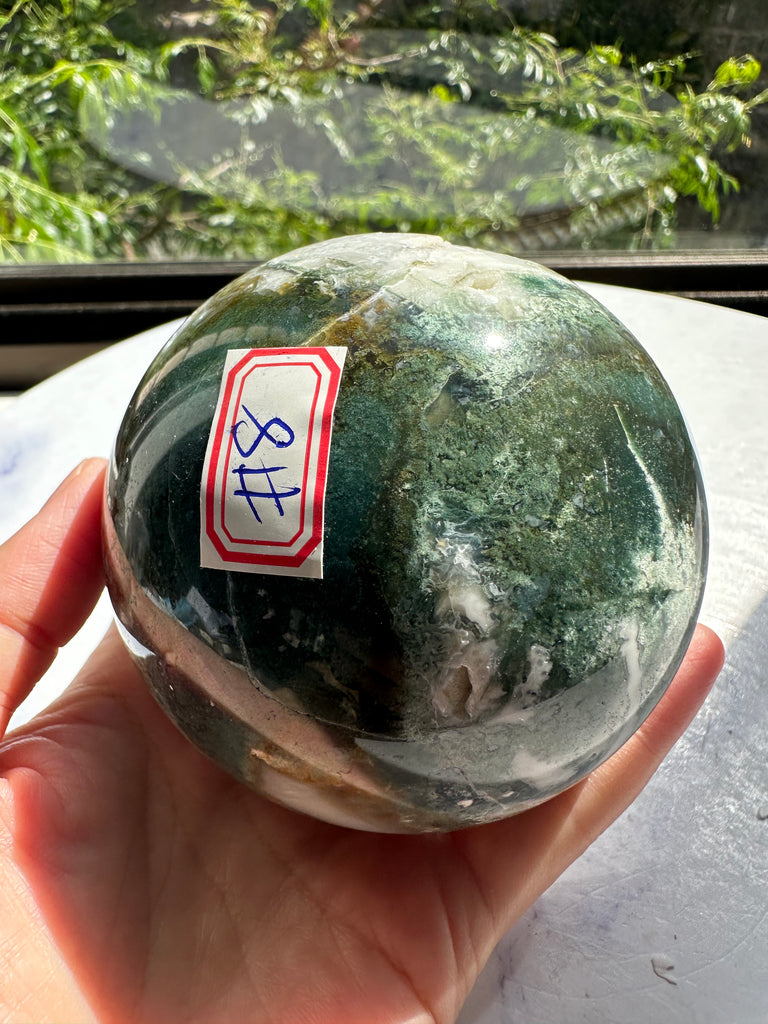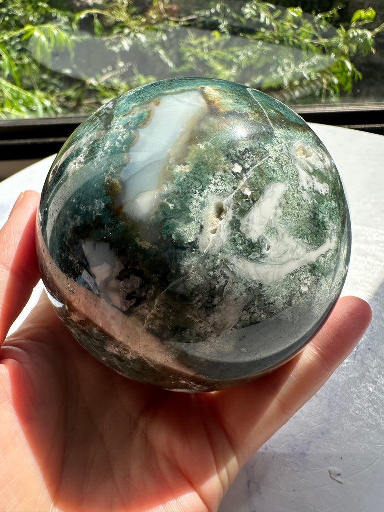 🌿 Large Moss Agate Sphere: Your Personal Piece of the Forest