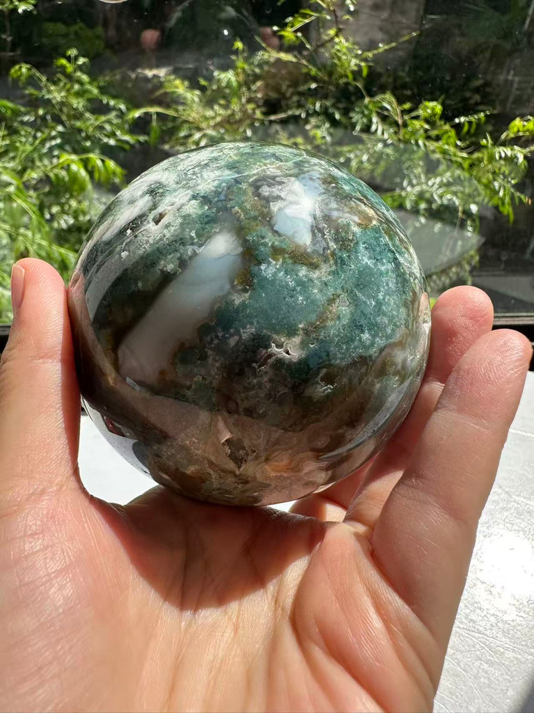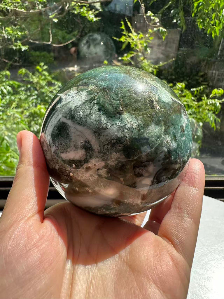 Large Natural Moss Agate Sphere | Grounding & Nature Connection Crystal - christmas crystal gift #8