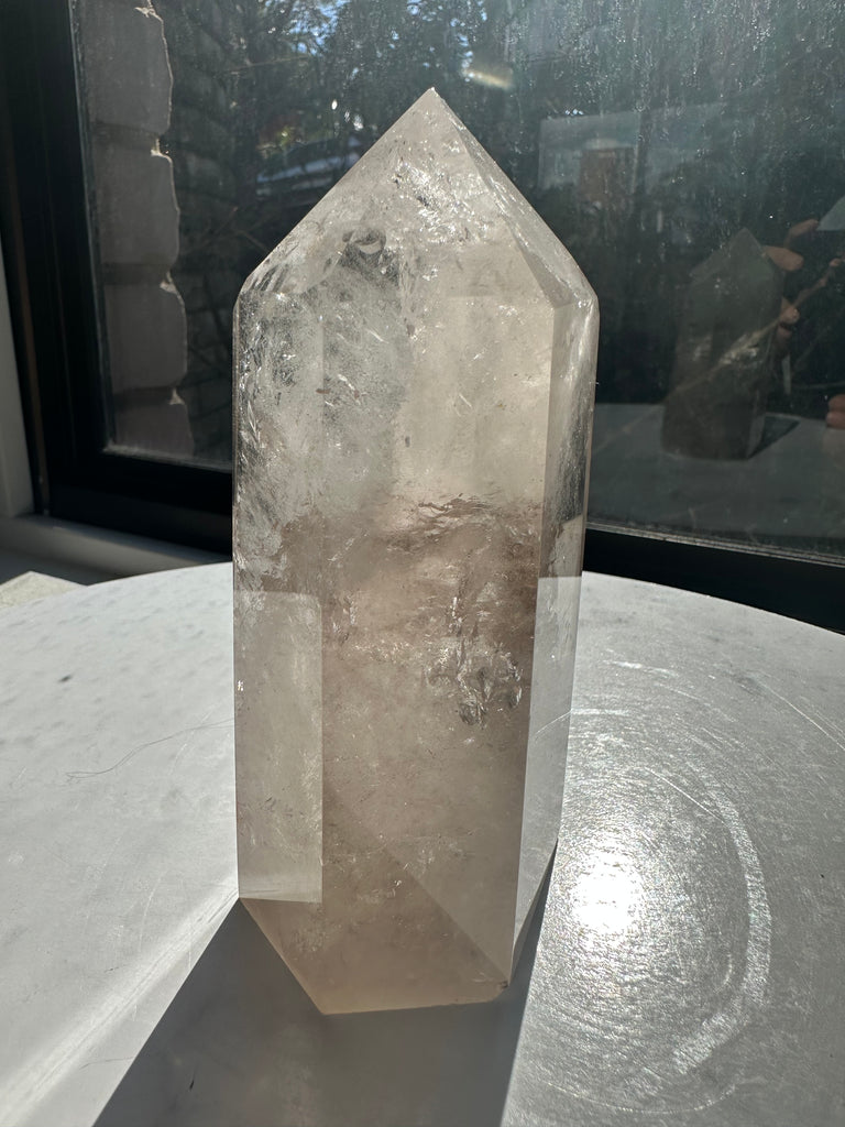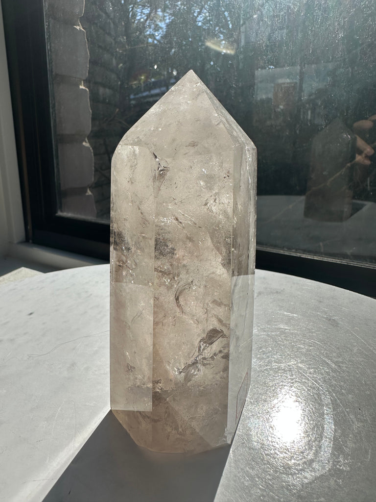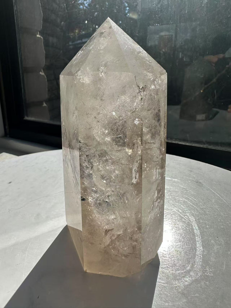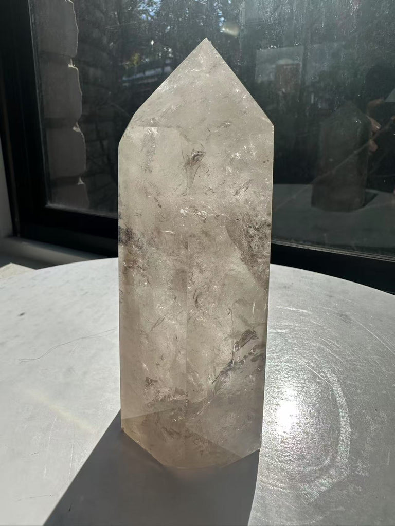 Feng Shui & Home Decor: In Feng Shui, Smoky Quartz is believed to protect and ground the energy in your space, creating a stable and balanced environment. Its towering shape symbolizes the upward flow of energy, making it ideal for placement in areas where you want to create harmony and protection.