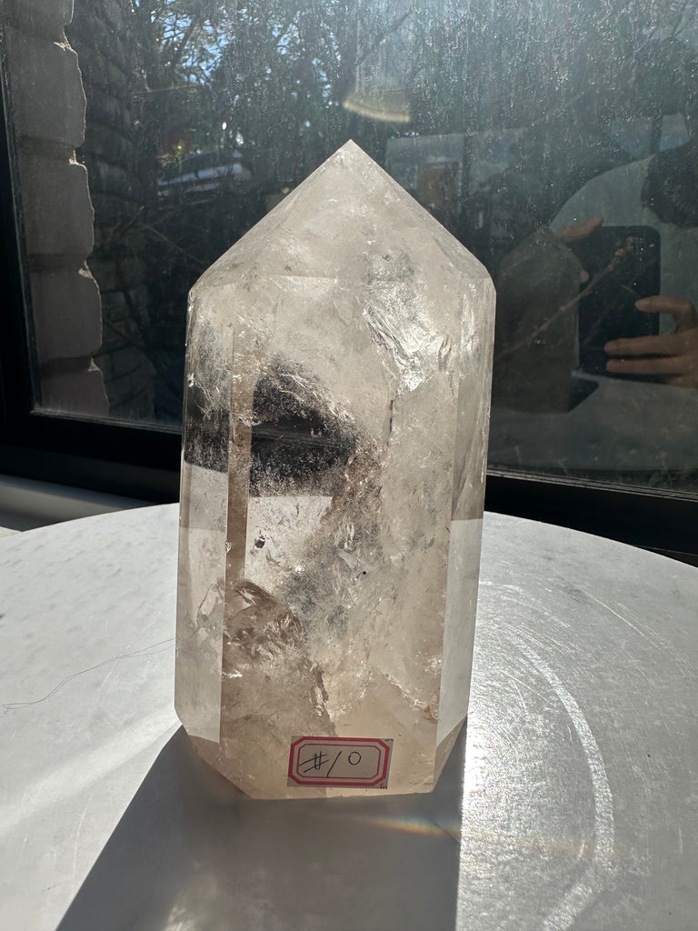 Large Natural Smoky Quartz Tower smoky quartz Obelisk w Rainbow & Snow Mountain Grounding Crystal home decor healing crystal collection, Christmas Crystal Gift #10