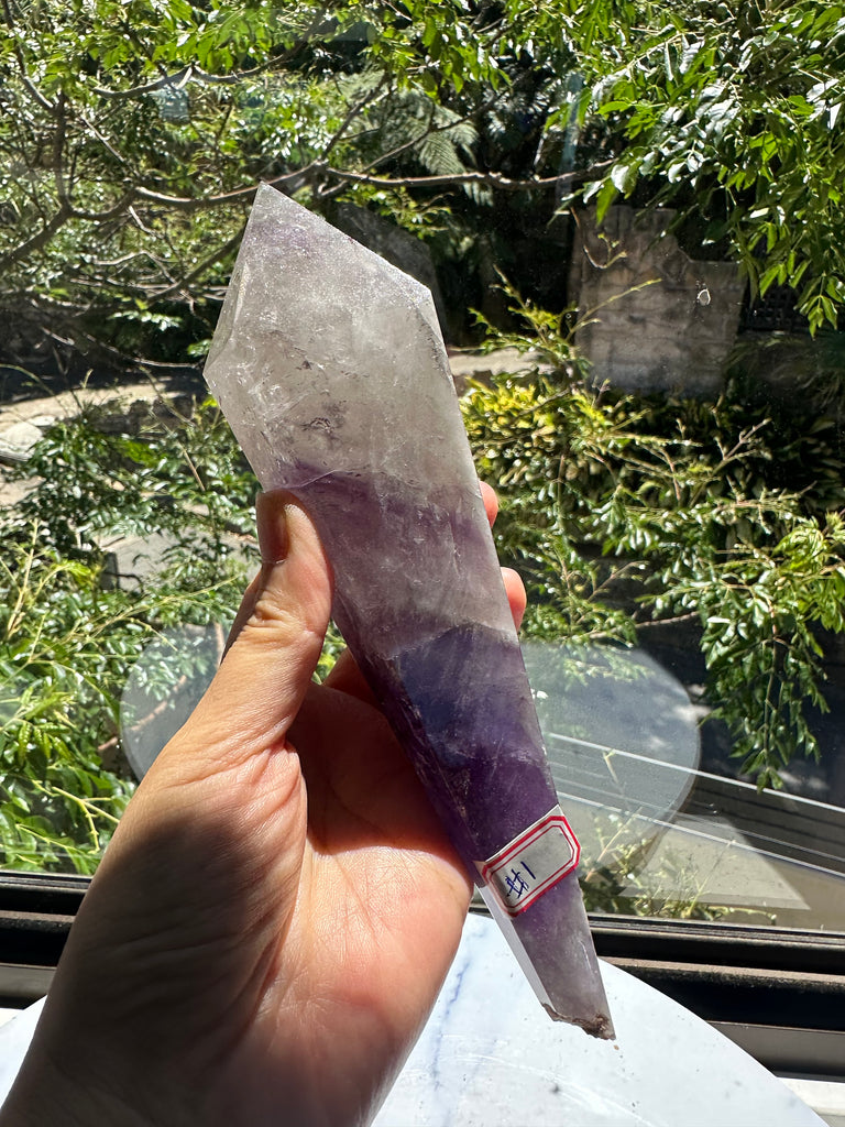 Introduction (The Hook): This stunning Large Phantom Amethyst Wand is more than just a crystal; it is a powerful spiritual tool. The deep purple Amethyst, combined with the rare, ghost-like Phantom Inclusions, makes it an unparalleled instrument for energy workers, healers, and anyone seeking profound spiritual breakthrough.