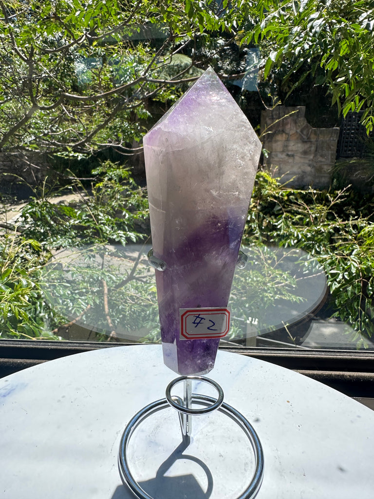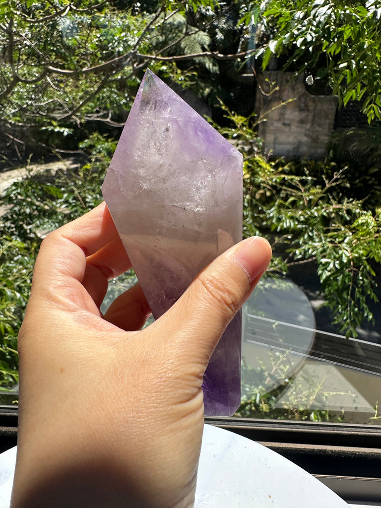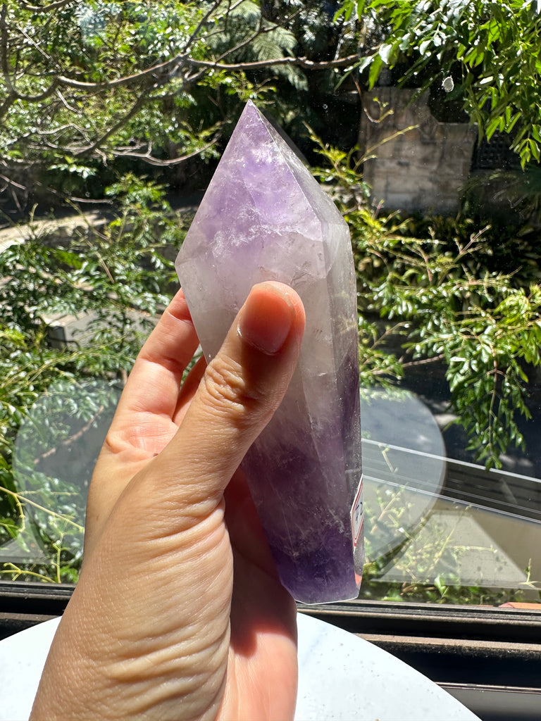 Introduction (The Hook): This stunning Large Phantom Amethyst Wand is more than just a crystal; it is a powerful spiritual tool. The deep purple Amethyst, combined with the rare, ghost-like Phantom Inclusions, makes it an unparalleled instrument for energy workers, healers, and anyone seeking profound spiritual breakthrough.