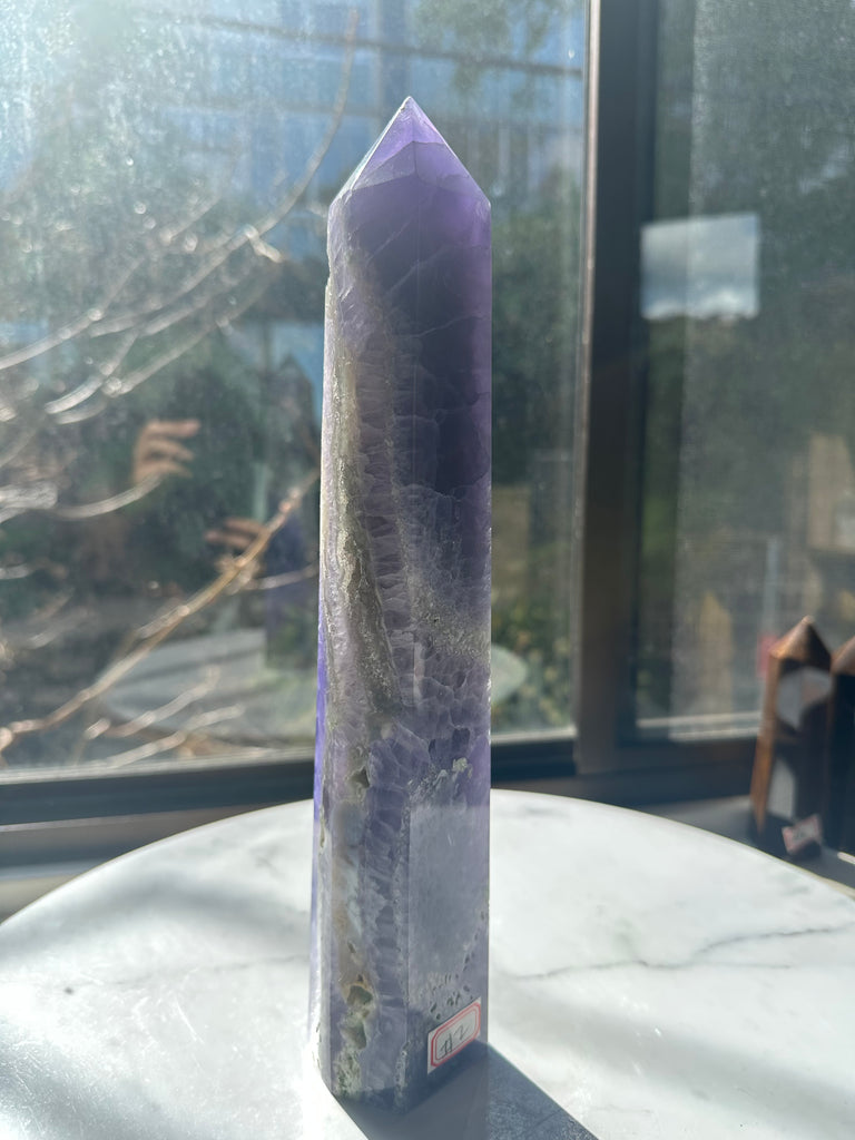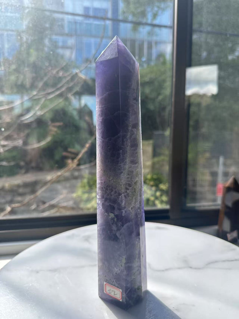 Whether you’re a seasoned crystal enthusiast or just beginning your journey, this **Large Purple Fluorite Tower** is a beautiful and functional piece that brings both aesthetic and energetic benefits to your space.