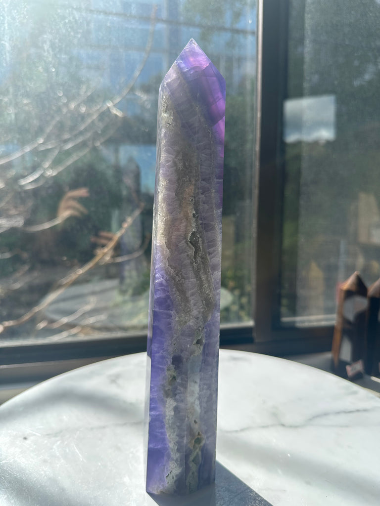 Bring clarity and balance into your life with this **Large Purple Fluorite Tower**—order now! 💜