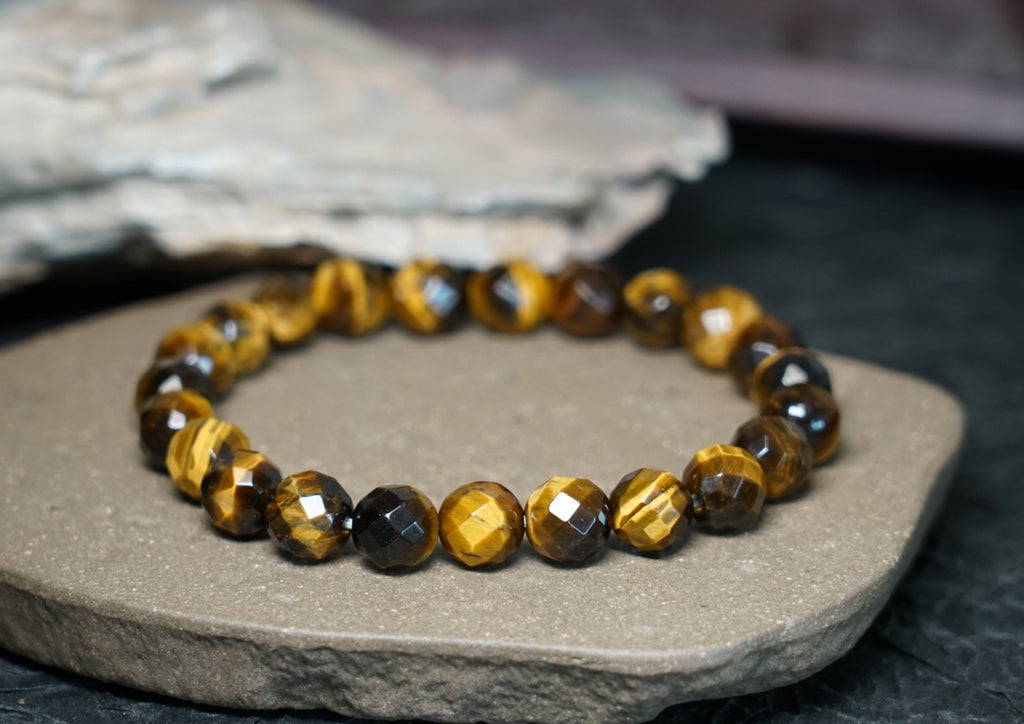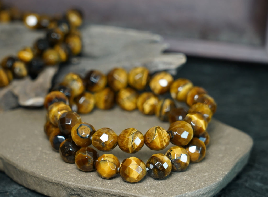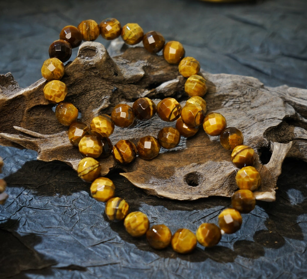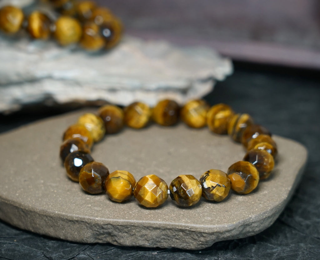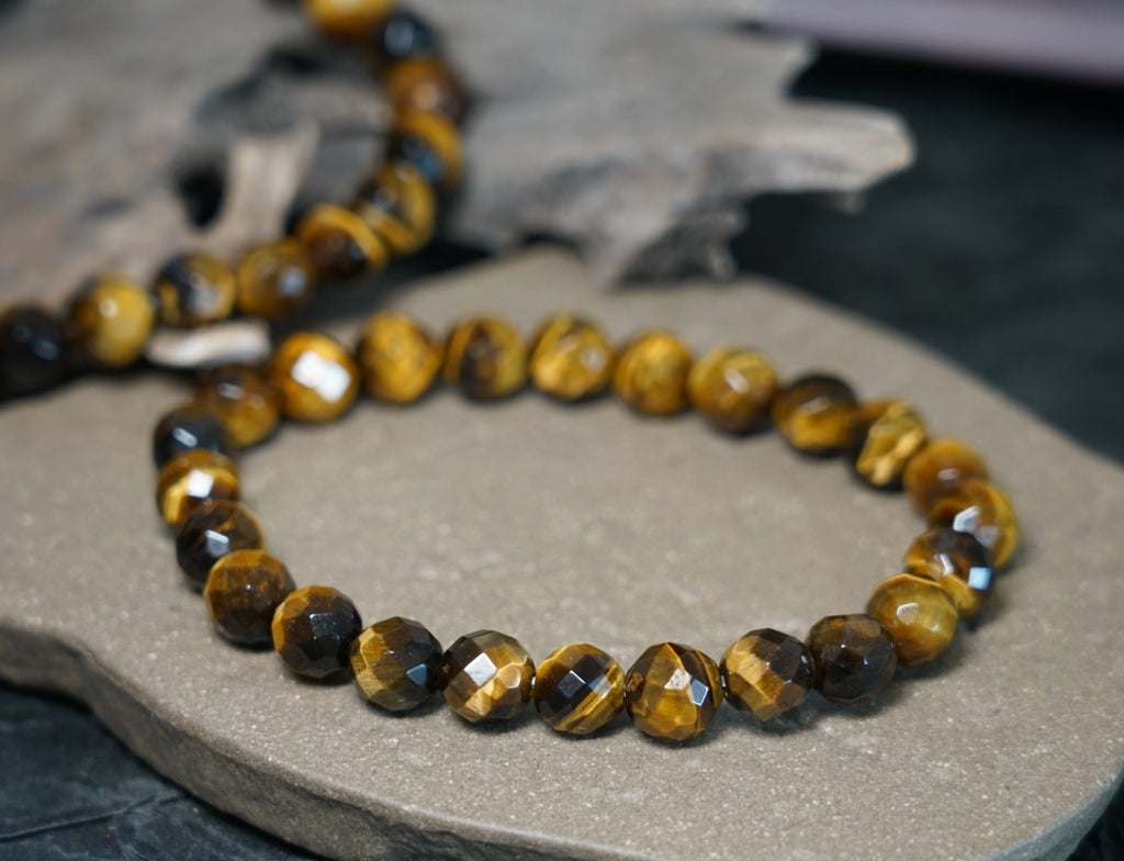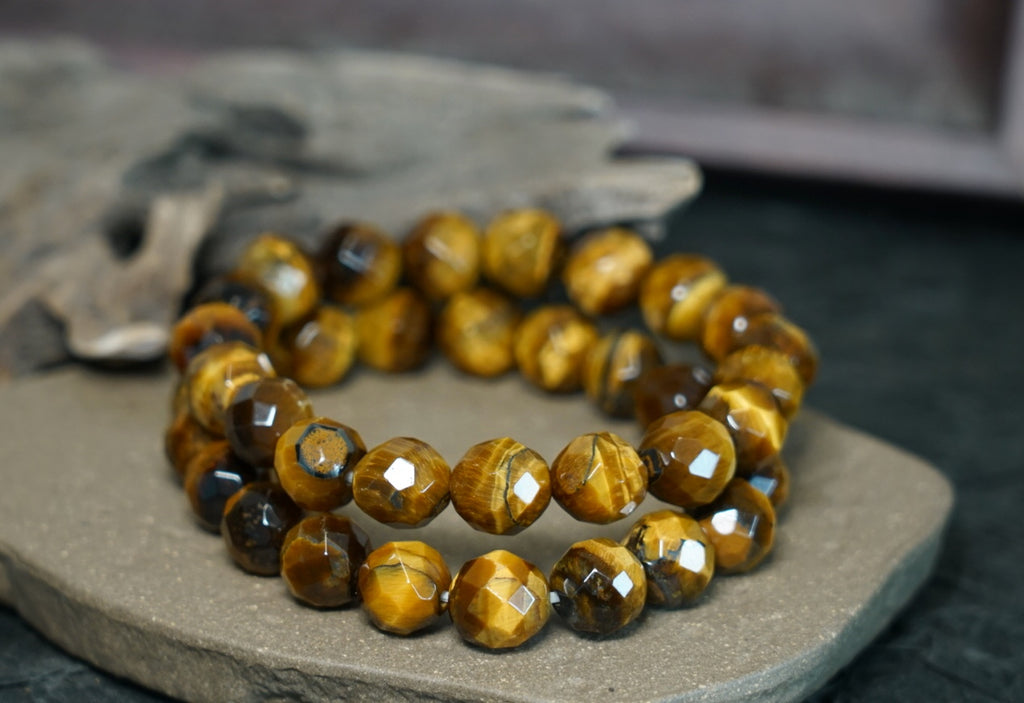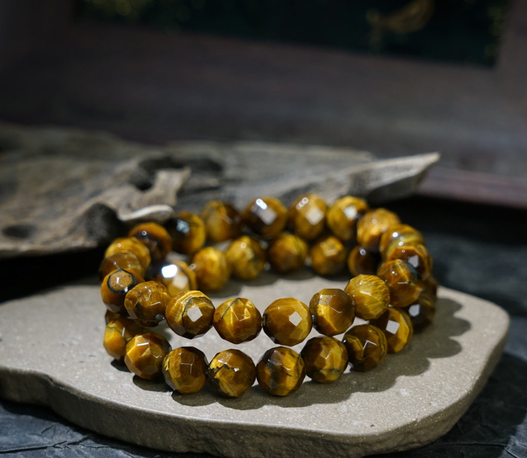 Multi-Faceted Tiger’s Eye Bracelet – Natural Golden Brown Crystal Healing Jewelry for Protection, Confidence & Christmas Crystal Gift