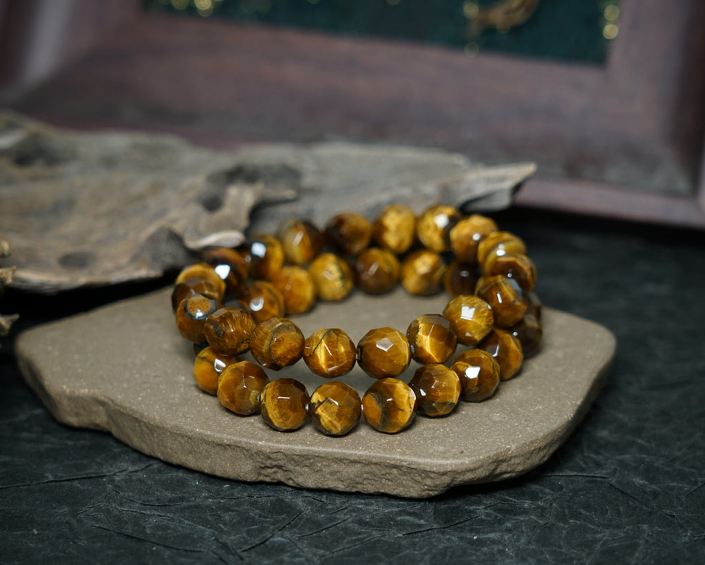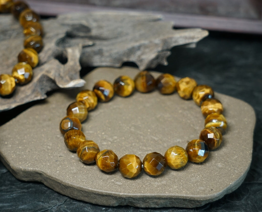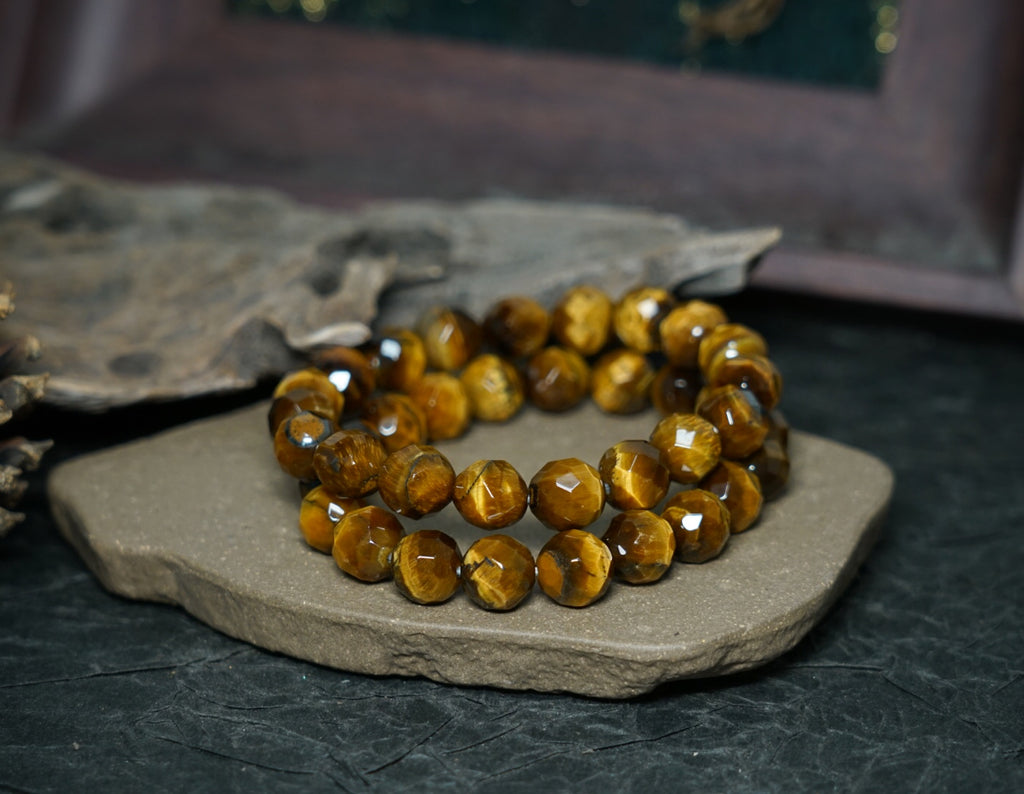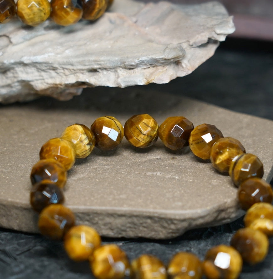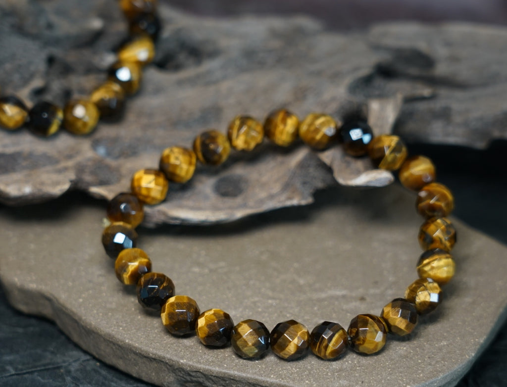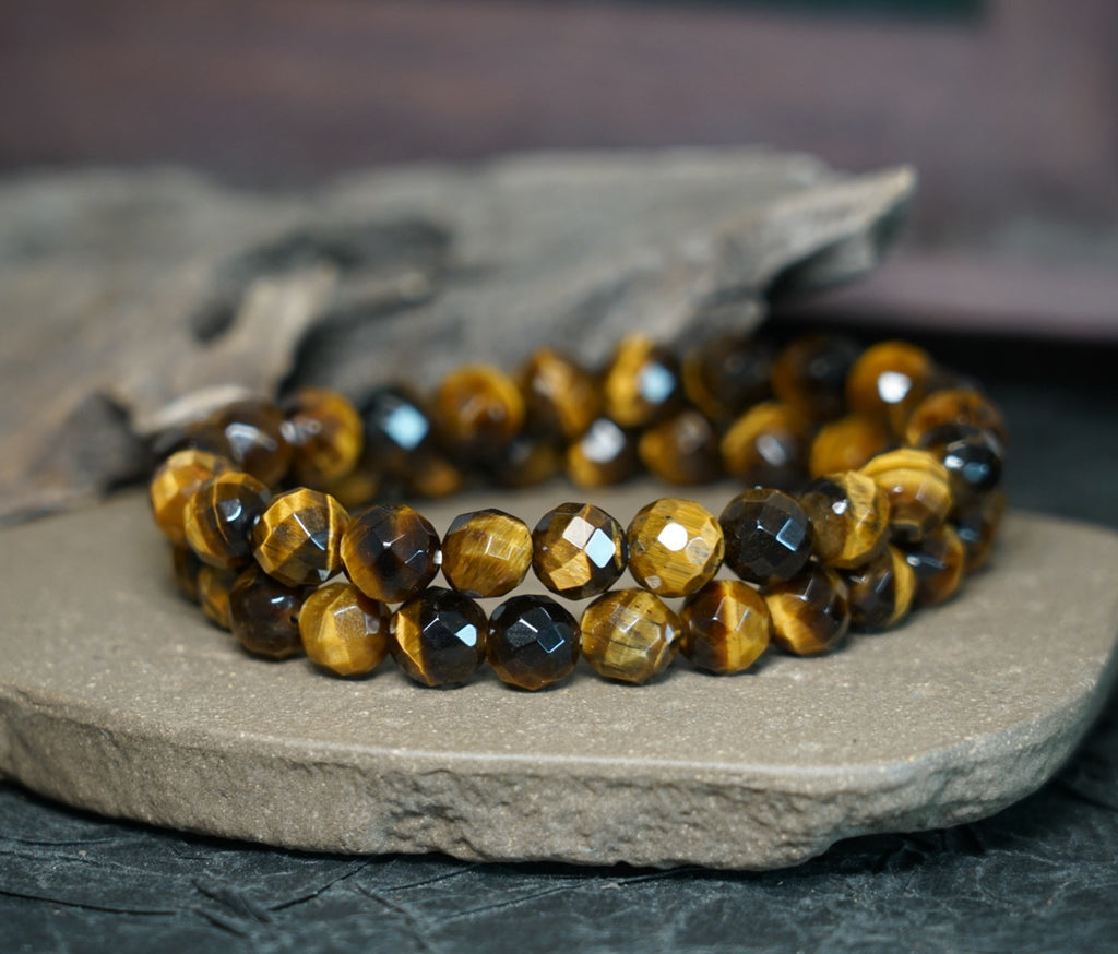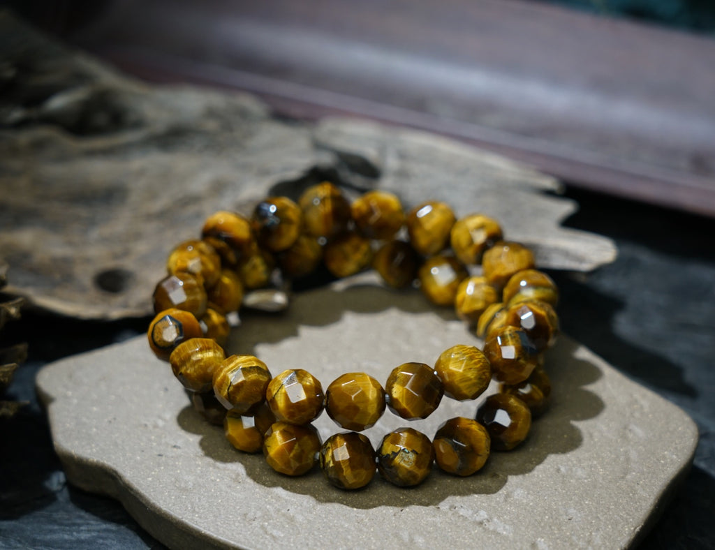 Multi-Faceted Tiger’s Eye Bracelet – Natural Golden Brown Crystal Healing Jewelry for Protection, Confidence & Christmas Crystal Gift