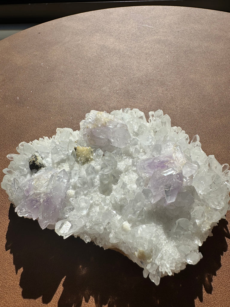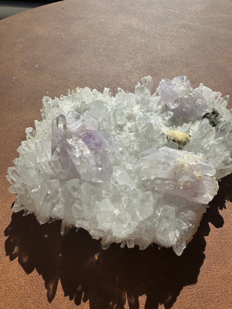 Bring pure, uplifting energy into your space with this beautiful Clear Quartz Cluster with Amethyst.