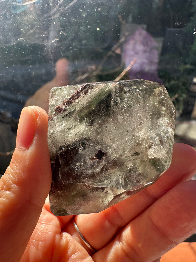 Discover the magic of the Earth with our Green Phantom Quartz Freeform.