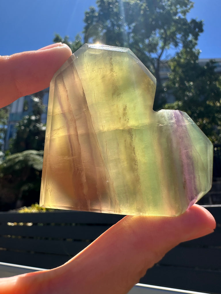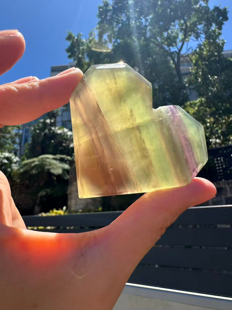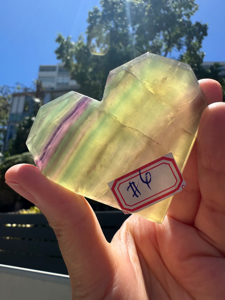 The Story of the Feather Fluorite (Establishing Rarity and Value): Elevate your collection with this magnificent Rare Feather Fluorite Heart. Known for its delicate, plume-like inclusions that resemble soft feathers, this unique form of Fluorite is a genuine collector's dream. Each heart is entirely one-of-a-kind, showcasing a breathtaking dance of colors—from rich purples and greens to translucent quartz.