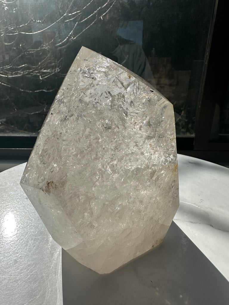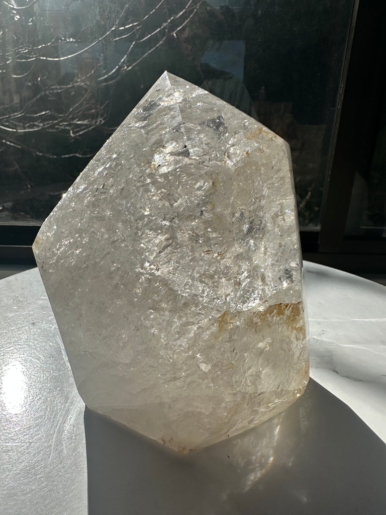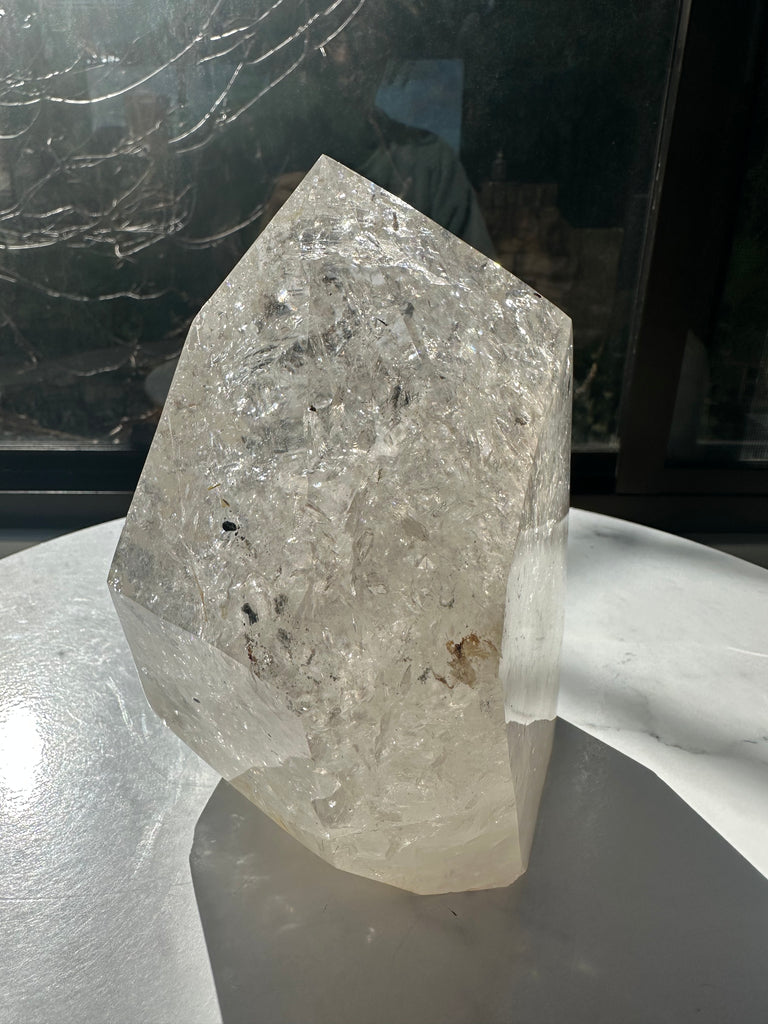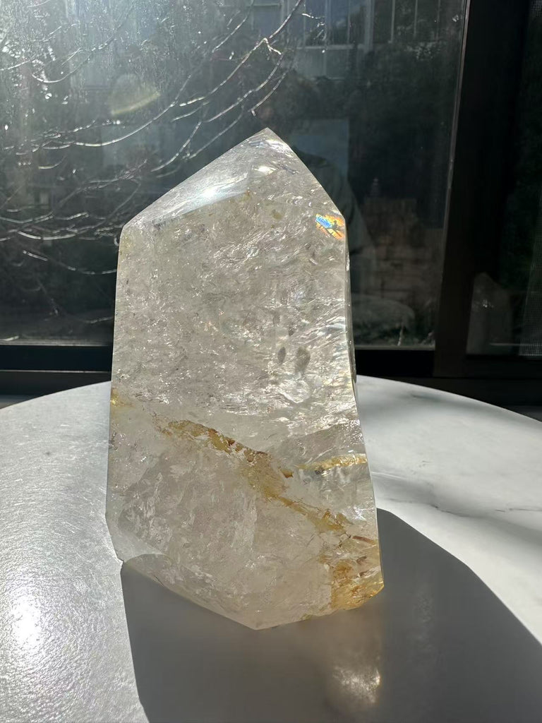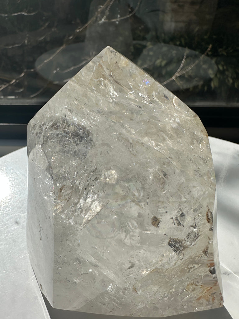 This magnificent tower is filled with brilliant rainbows that dance across its surface, creating an aura of joy, hope, and higher connection. Its substantial extra-large size and freeform polished shape make it a powerful centerpiece for meditation spaces, healing rooms, or luxury crystal collections.